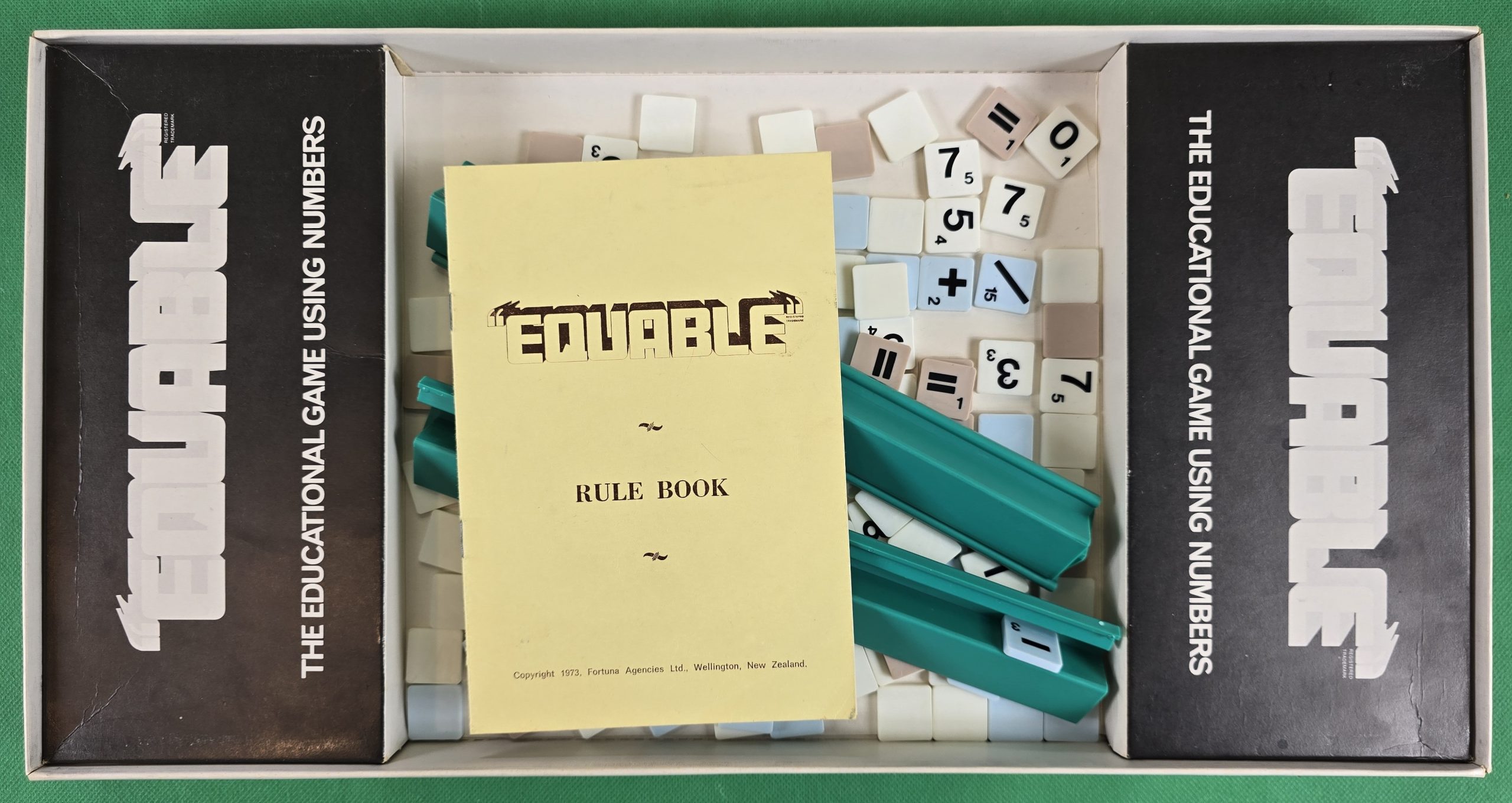 Equable is a vintage board game from 1973, created in New Zealand by Fortuna. As the mathematical version of Scrabble, it challenges players to use their math skills to form equations on the board. Suitable for four players, this game is not only fun, but also educational. Equable has even won the prestigious dc Designmark award. This brand new version of the game is perfect for vintage board game collectors and math enthusiasts alike. Get ready to put your math skills to the test and enjoy hours of fun with Equable.