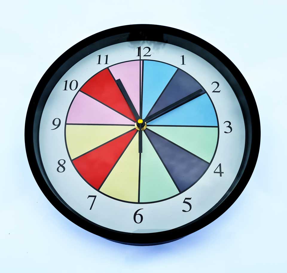 These striking wall clocks are perfect for the classroom. Featuring: