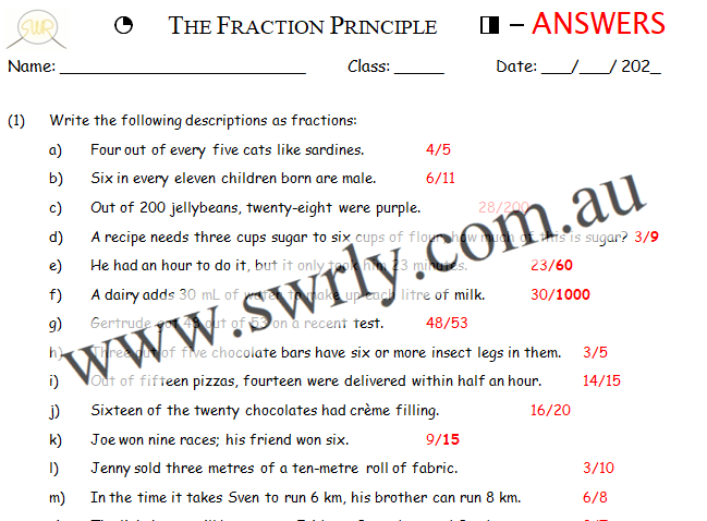 This is the answers to the simple worksheet helps to demystify fractions by showing that we use them all the time.