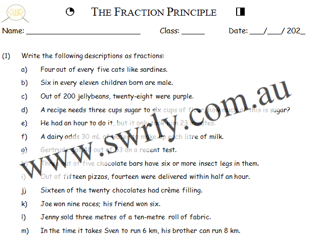 This simple worksheet helps to demystify fractions by showing that we use them all the time.
